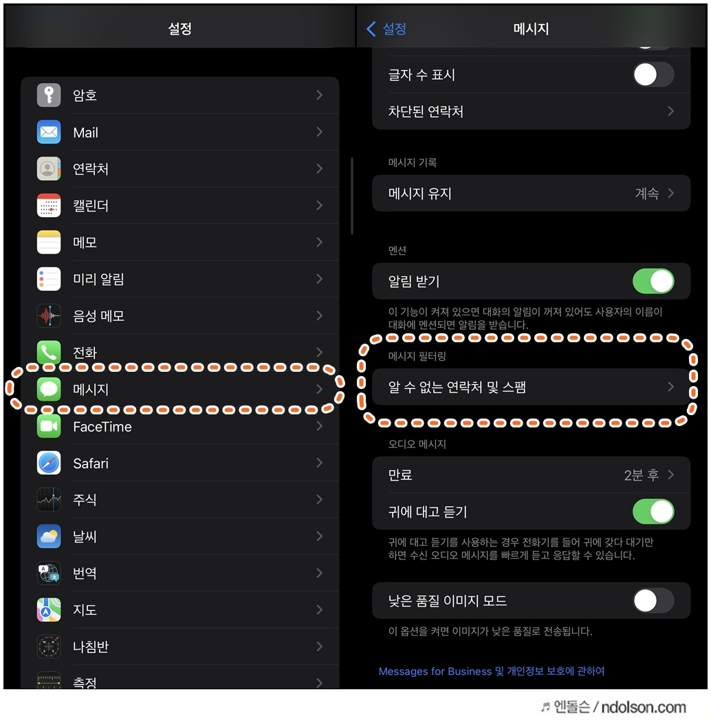 아이폰은 알 수 없는 발신자 필터링 기능을 활용하면