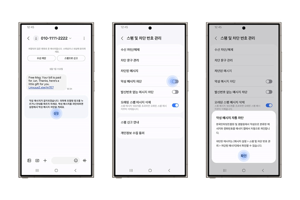 지금 바로 문자 스팸 차단 설정을 확인해 보시기 바랍니다.
