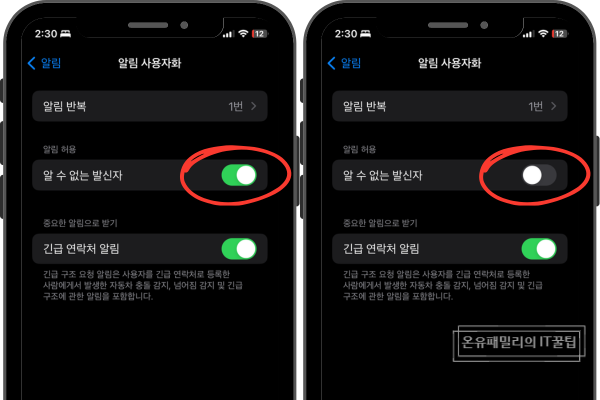 - 중요한 문자를 놓치지 않도록 설정 확인 필요