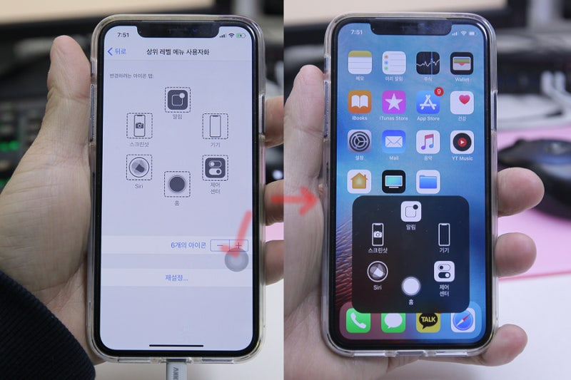 아이폰에서는 AssistiveTouch 기능을 사용하면 버튼 없이 캡처가 가능합니다.