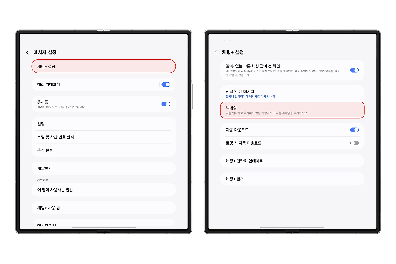 - 메시지 앱 → 설정으로 이동