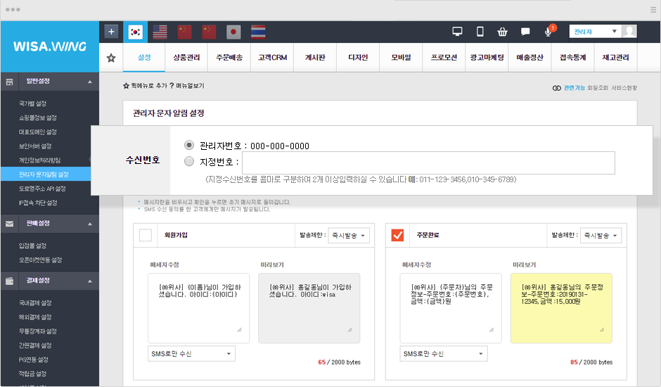 문자 수신이 정상적으로 되지 않을 수 있습니다.