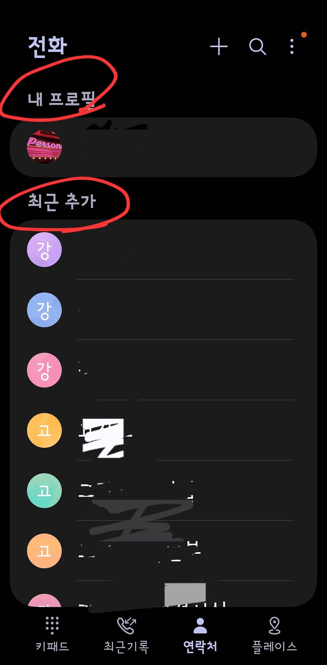 - 전화 앱 또는 연락처 앱을 실행합니다.