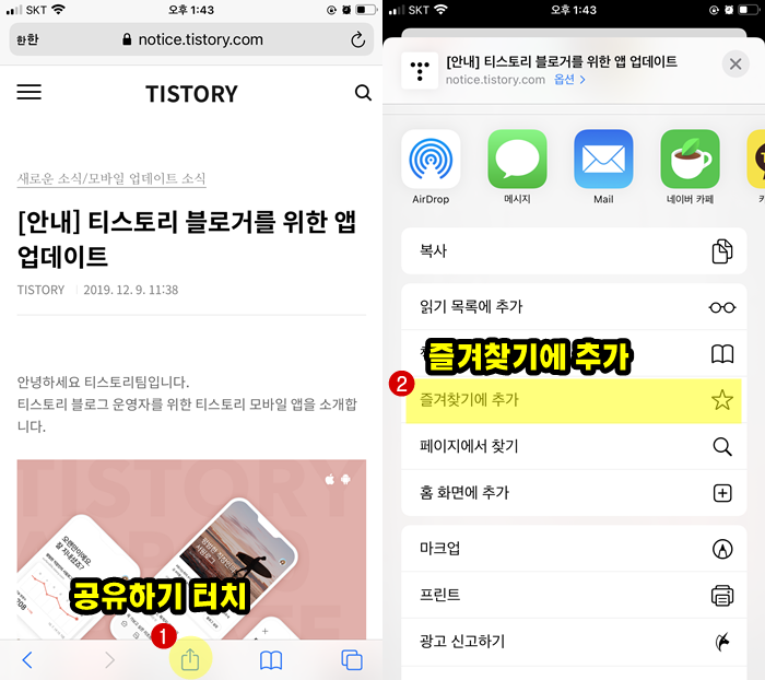 아이폰 즐겨찾기 등록 방법