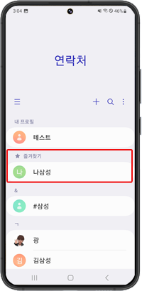 - 즐겨찾기로 등록할 연락처를 선택합니다.