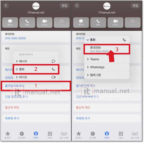 - 연락처 추가 또는 즐겨찾기 등록을 선택합니다.