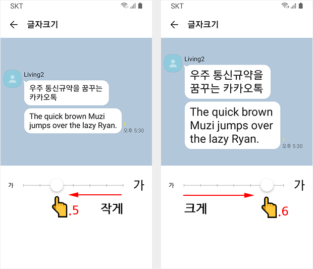 - 스마트폰 글씨를 키웠는데 카톡만 작을 때